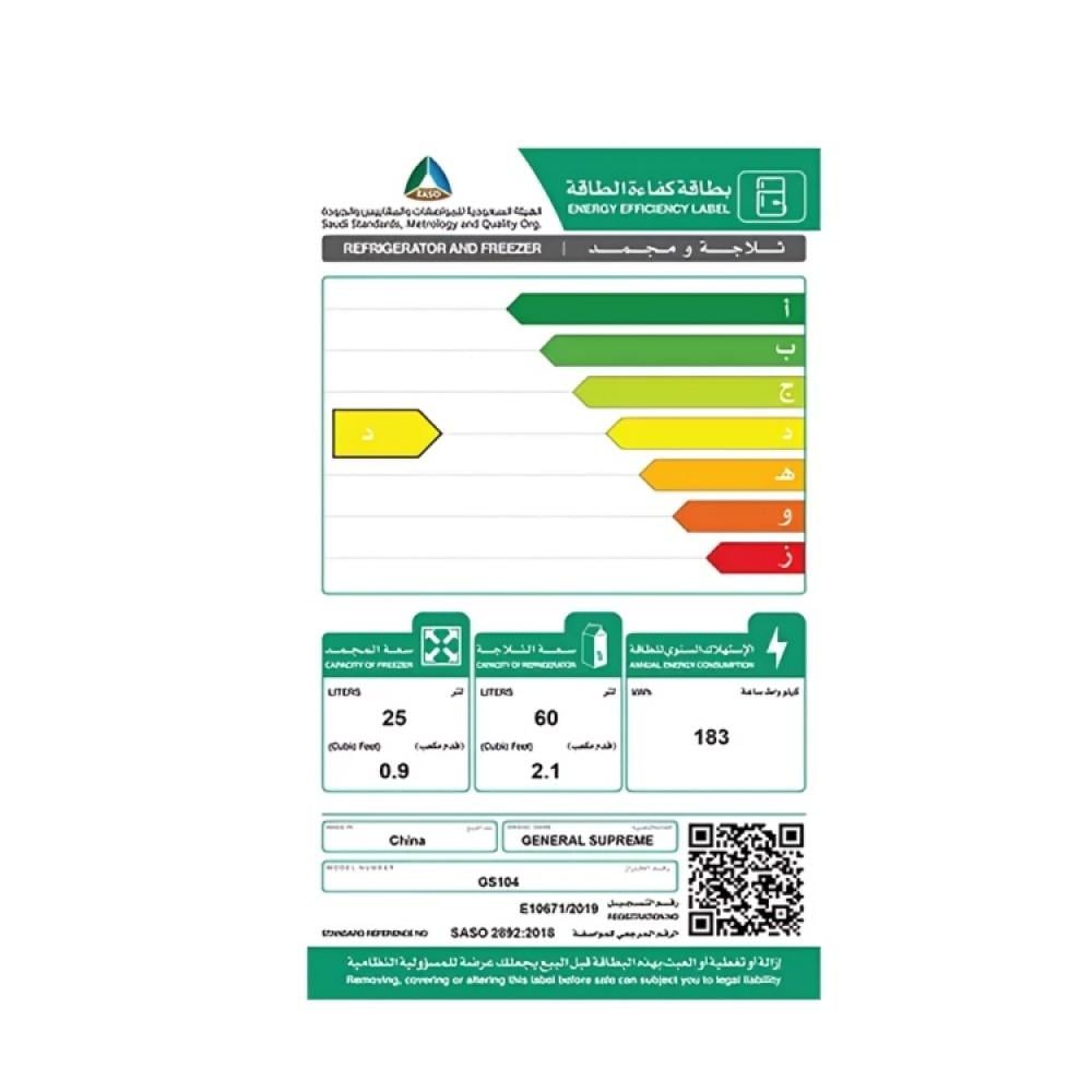 مميزات ثلاجة صغيرة بابين جنرال سوبريم - 3 قدم - أبيض :