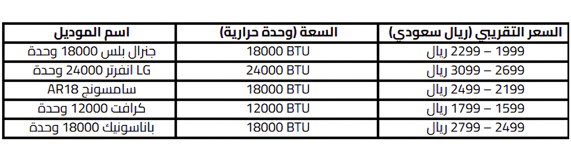أسعار مكيفات سبليت في السعودية 2025 (جدول أسعار)
